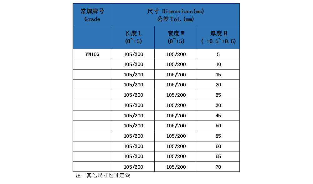 三.硬质合金无磁板牌号介绍