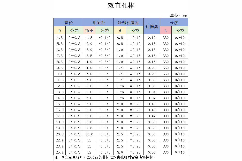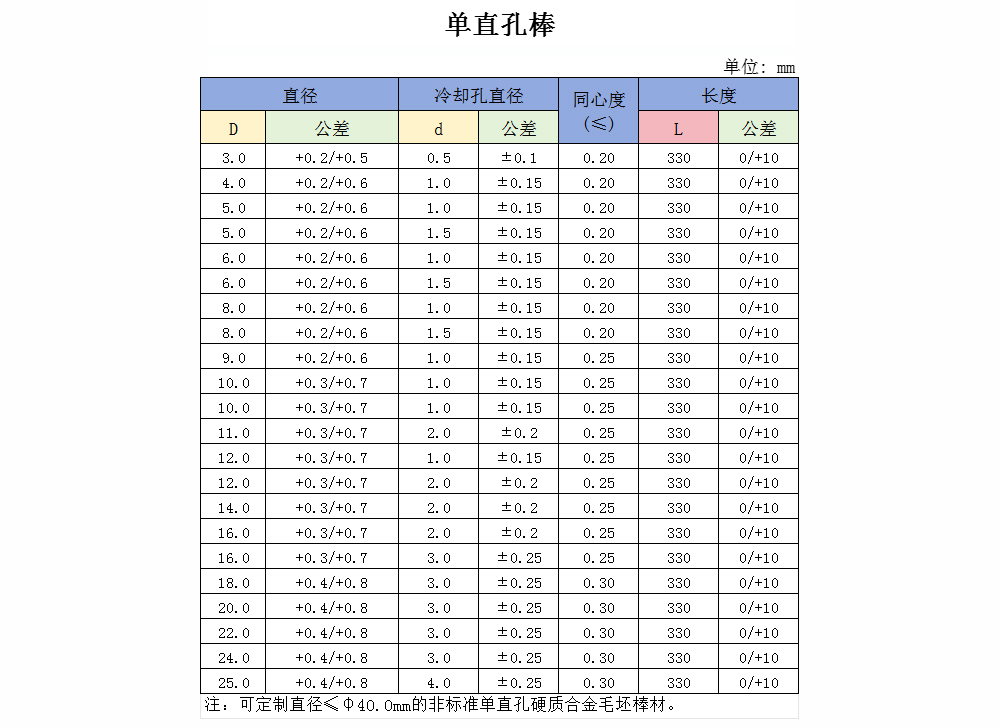 四.硬质合金空心圆棒规格