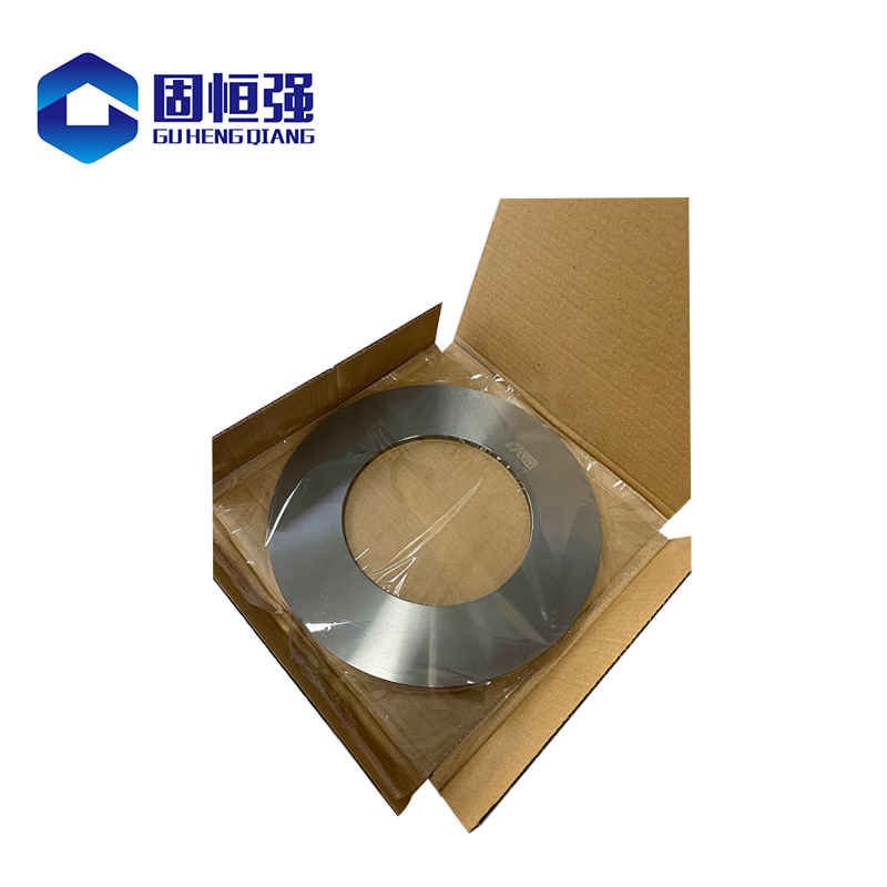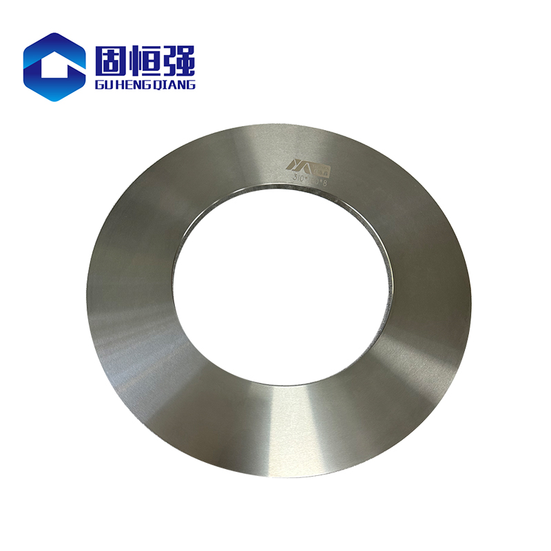 在中国市场,由于成本预算有限,许多工厂主要使用高速钢刀片(台湾的SKH51和日本的 KNH31 级)来替代无取向钢刀片。我公司目前正在研发一种MS40级硬质合金分条刀片,其机械性能是高速钢的15-20倍。该刀片分切厚度为0.2mm、0.25mm、0.3mm、0.35mm的硅钢材料,特别是分切新能源材料时,单边可分切530吨、15000米的材料,双边可分切1.6万吨、30000米的材料,刀具修磨一次,精加工产品毛刺为0.015mm。
