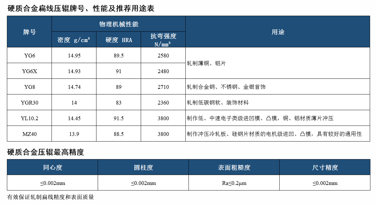 硬质合金扁线压辊以合金结构钢和工具钢为基体的辊芯,镶装硬质合金辊环。辊环与辊芯过盈配合,结构合理,使用稳定。