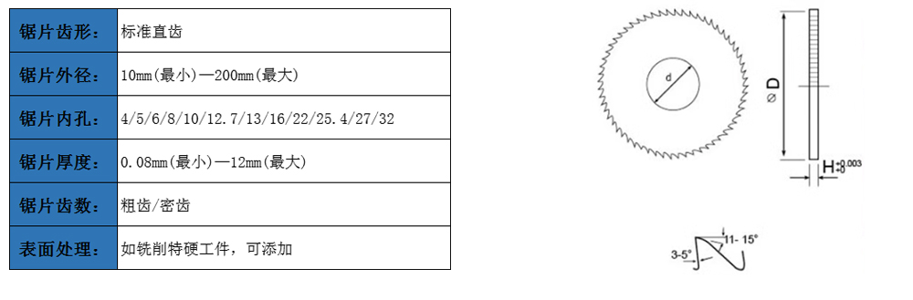 五. 整体硬质合金锯片铣刀定制规格和尺寸须知