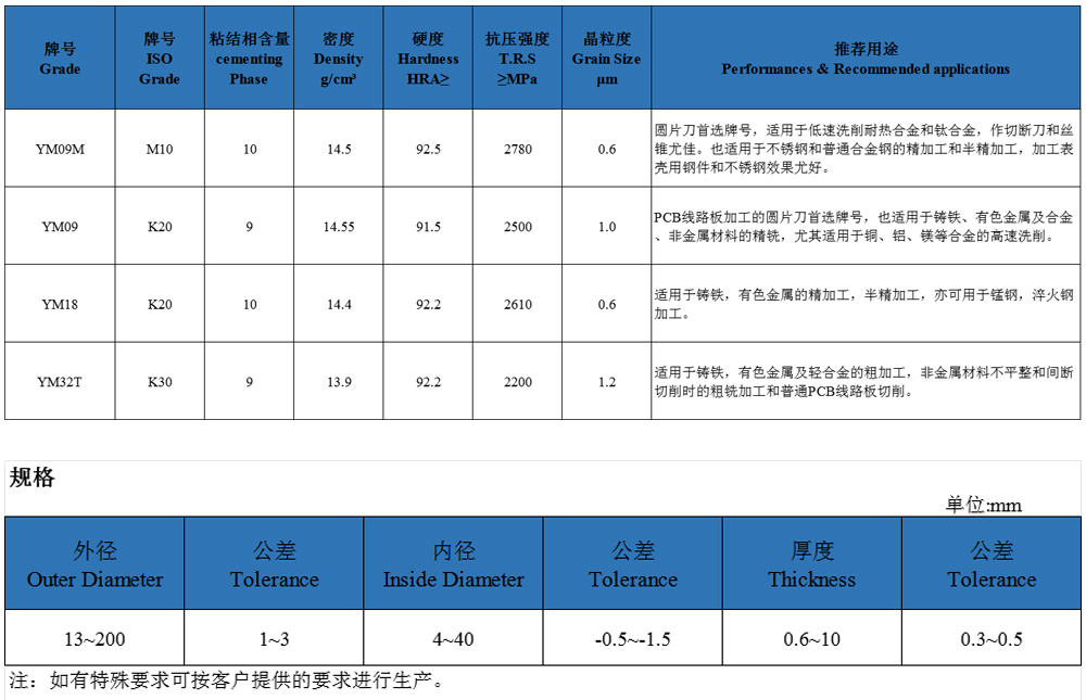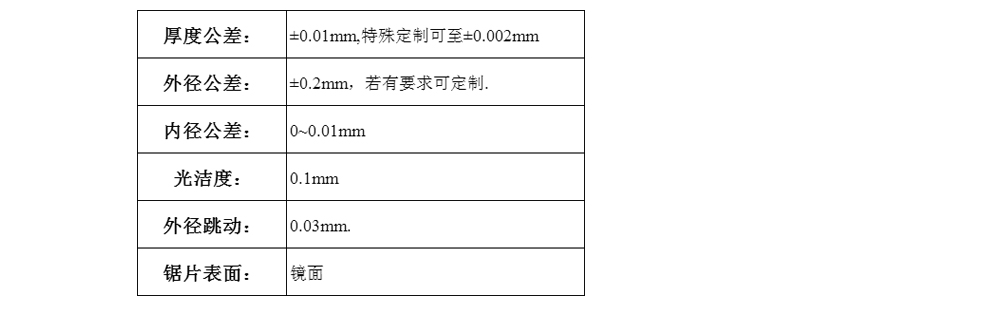 厚度可适用多薄与外径有关,厚度范围起始尺寸一般表示使用该外径时厚度可达到的尺寸,例如:外径60mm,厚度范围0.5-10mm,即表明外径60时我司可生产的锯片最薄只能做到为0.5mm。